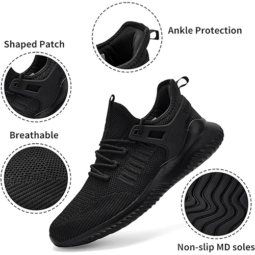 Walking Shoes for Men Sneakers – Slip on Memory Foam Running Tennis Shoes for Athletic Workout Gym Indoor Outdoor Lightweight Breathable Casual Sneakers All Black-d