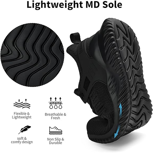 Walking Shoes for Men Sneakers – Slip on Memory Foam Running Tennis Shoes for Athletic Workout Gym Indoor Outdoor Lightweight Breathable Casual Sneakers All Black-d